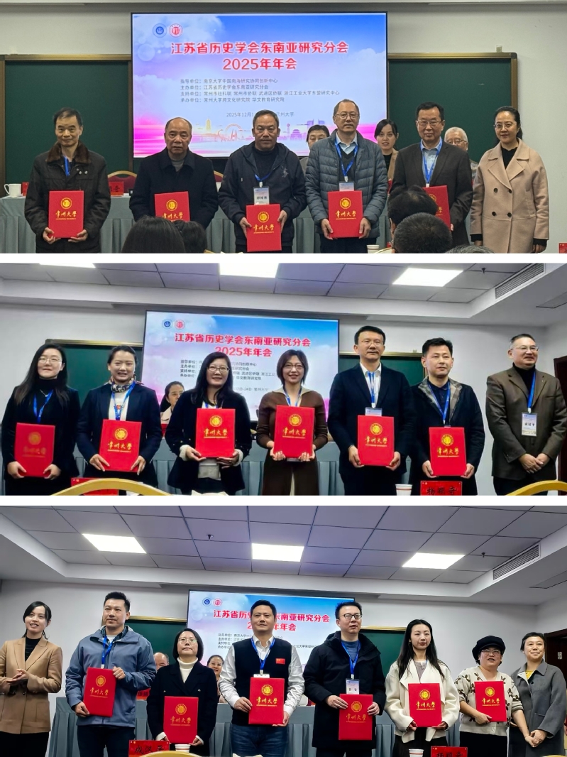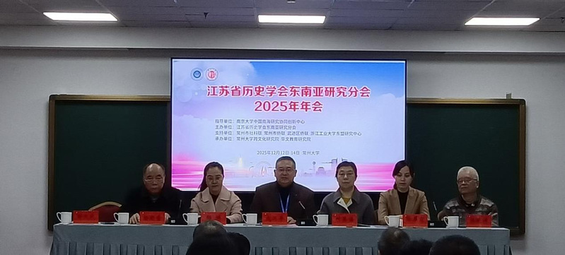 2025年12月12日至14日,江苏省历史学会东南亚研究分会2025年会在常州大学顺利举行。本届年会指导单位为南京大学中国南海研究协同创新中心,支持单位为常州市社科联、常州市侨联、武进区侨联和浙江工业大学东盟研究中心,主办单位为江苏省东南亚研究分会(简称“研究会”),承办单位为常州大学跨文化研究院/华文教育研究院。来自南京大学、复旦大学、厦门大学、华南师范大学、国防科技大学外国语学院等国内高校和科研机构的40余位专家学者参会。在常州大学人文社科处的大力支持下,此次年会已成为2025年下半年学术交流基金资助项目。开幕式由研究会副会长郑先武主持。
